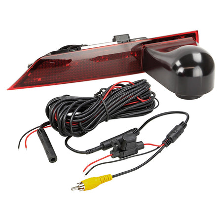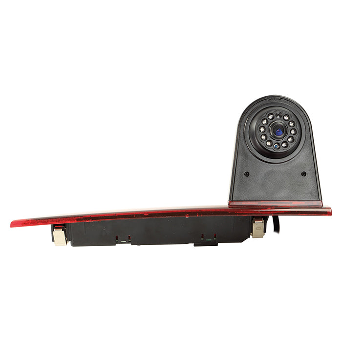 Bakkamera til Ford Transit Custom (FAC/FAD) med dobbelte bagdøre (06/2016 - 2022), designet til at erstatte det originale 3. bremselys. Kameraet tilbyder nattevisning, hjælpelinjer og en 20° justerbar synsvinkel, der giver forbedret bagudsigte og sikkerhed under bakning.