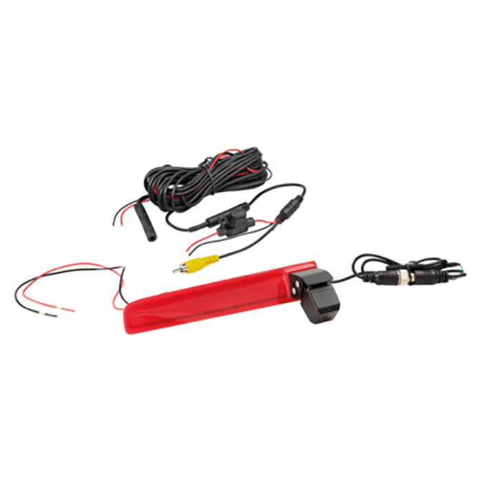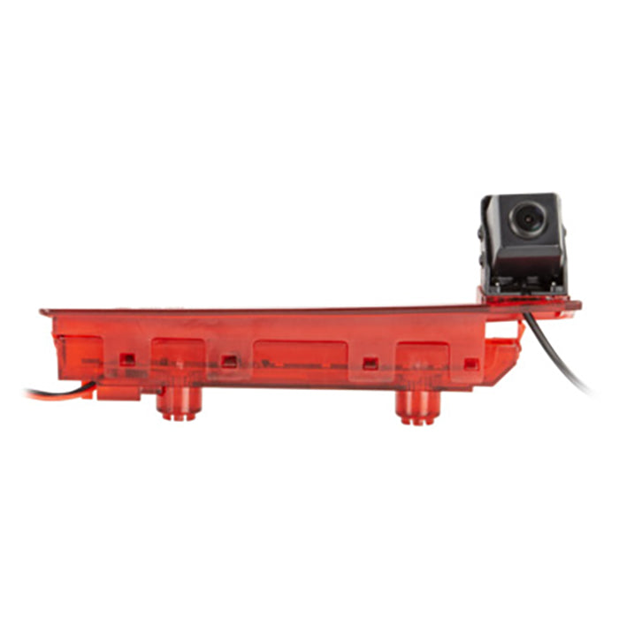 Bakkamera designet til VW Caravelle, Multivan og Transporter T5/T6/T6.1 med dobbelte bagdøre. Det erstatter den originale 3. bremselygte og tilbyder guide-linjer, justerbar synsvinkel og IP68-beskyttelse. Perfekt til at forbedre sikkerhed og komfort ved parkering og manøvrering.