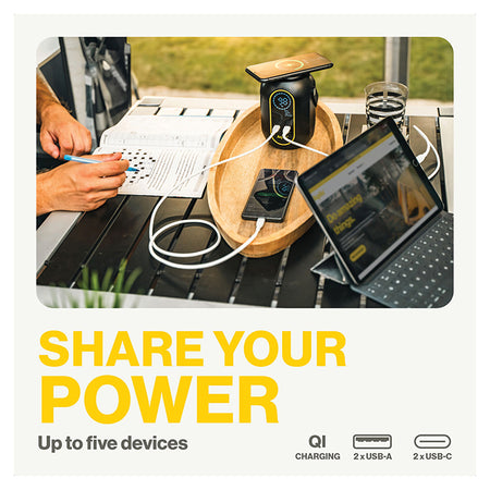 En kompakt, men kraftfuld powerstation med en stor kapacitet på 200Wh. Med denne mini-powerstation har du strøm nok til at oplade alle dine enheder flere gange.