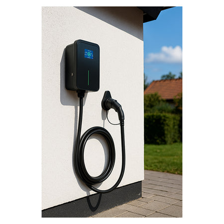 Ladeboksen har en Type 2-tilslutning til bilen og passer til de fleste køretøjer. Kablet har en længde på 7 meter og er ideelt til privat og offentligt brug.
