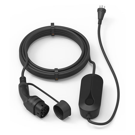 Det 5 meter lange kabel giver fleksibilitet, og den indbyggede IC-CPD sikkerhedsenhed beskytter mod overstrøm, fejlspænding og overophedning. Med IP65-klassificering er laderen modstandsdygtig over for både støv og vand, så den trygt kan bruges udendørs året rundt. Leveres komplet i en praktisk opbevaringstaske.