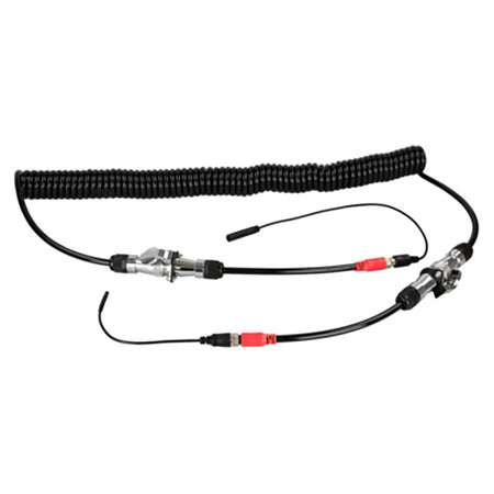 Kamerakabelsæt til trailere og campingvogne, designet til problemfri kablet installation af ACV-kameraer med én kameralinse. Sættet inkluderer patenterede fastgørelser og en spiralledning for nem adskillelse mellem køretøj og trailer. IP66-klassificering sikrer beskyttelse mod støv og vand.