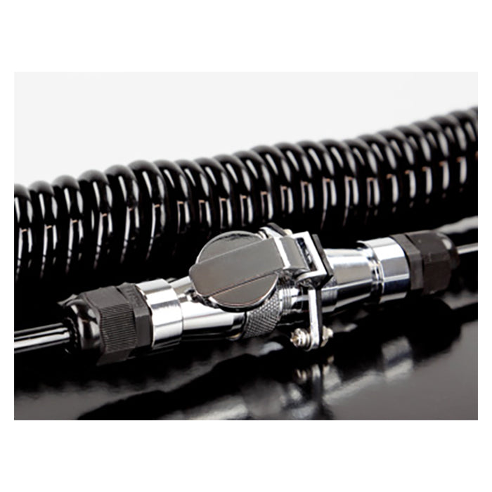 - Spiralformet kabel for fleksibel forlængelse og nem adskillelse mellem køretøj og trailer.