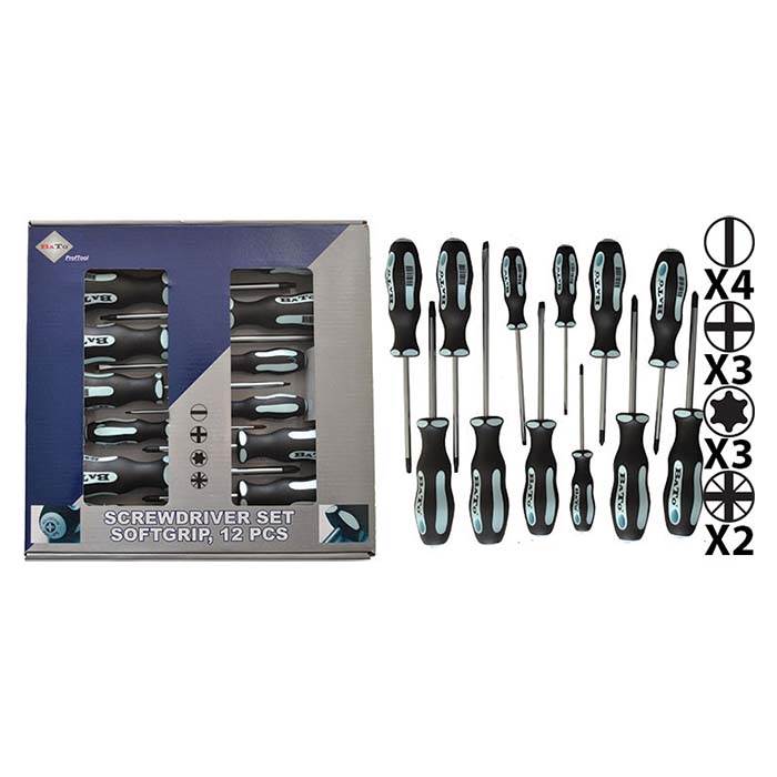 Bato, Multifunktionel Skruetrækkersæt - 12 Dele med Kærv, Torx, PH, PZ