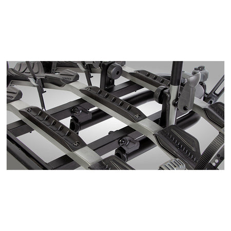 Cykelholderen er nem at samle og montere uden brug af værktøj, og den sidder stabilt med en integreret anti-svaj funktion. Den brede hjulholder passer til de fleste cykel- og dæktype – inkl. elcykler med brede dæk op til 4".