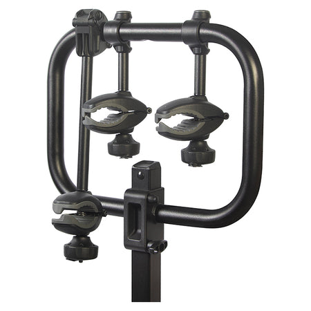 Cykelholderen har brede hjulstøtter, der nemt kan justeres, så den passer til forskellige cykeltyper – lige fra børnecykler til mountainbikes og elcykler. Hver cykel fastgøres med robuste stropper og en arm med quick-release spænder, hvilket sikrer, at cyklerne står stabilt under kørslen.
