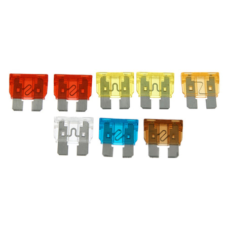 Dette sikringssæt indeholder 8 fladsikringer i forskellige amperestyrker, så du altid har den rette sikring ved hånden. Perfekt til bil, motorcykel, båd eller andre køretøjer med 12V-24V elsystemer.