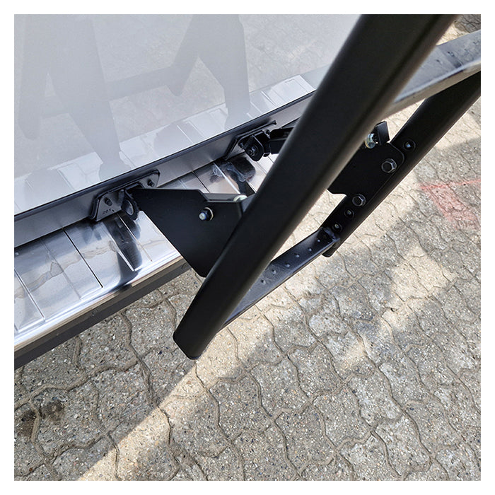 Adgangsstige som skal monteres på bagdøren af varevogn, og som dermed giver adgang til tagbagagebæreren. Den er velegnet til alle typer døre, og kan monteres uden at bore i køretøjet. Den kan også monteres på varevogne med vinduer på bagdørene. Ydermere kan den justeres ind og ud i beslagene.