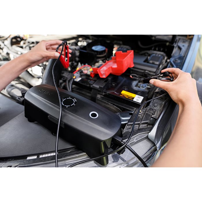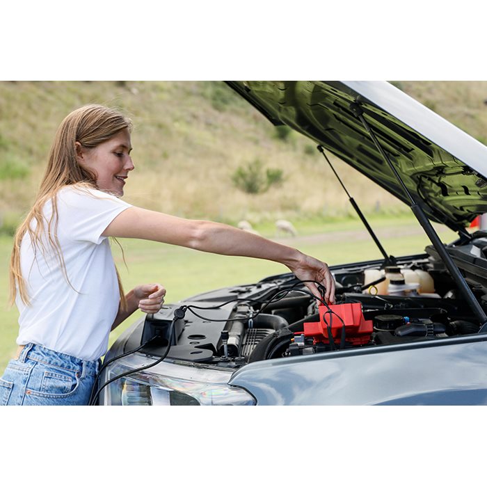 CS FREE er en 4-i-1 løsning: adaptiv booster, batterioplader, powerbank og vedligeholdelseslader. Den analyserer automatisk et fladt batteri og starter din bil igen på under 15 minutter. Den indbyggede powerbank har USB-C og USB-A udgange, så du også kan oplade laptops, smartphones og tablets.