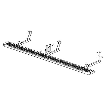 Solidt monteringsbeslag udviklet til universal langt sidetrinbræt til venstre- og højreside. Sikrer nem og stabil montering på varevogne, så trinbrættet sidder fast og giver maksimal holdbarhed.