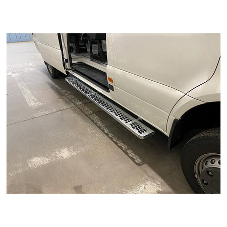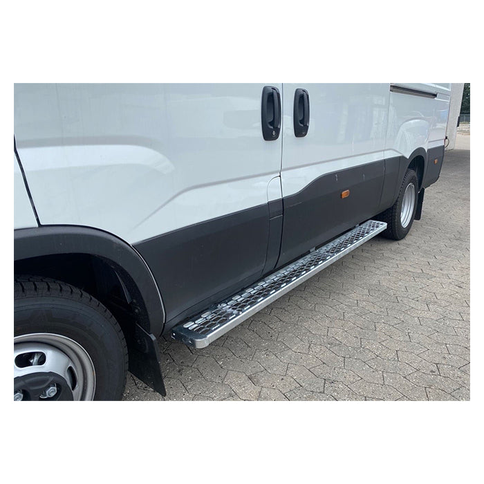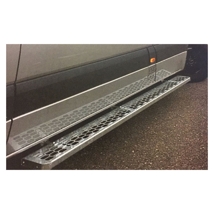 Praktisk langt sidetrin til montering under højre sidedør og skydedør på varevogne. Giver nem og sikker adgang til varerummet, reducerer belastning ved ind- og udstigning og beskytter bilen mod stød og ridser.