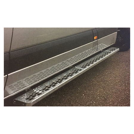 Praktisk langt sidetrin til montering under venstre sidedør og skydedør på varevogne. Giver nem og sikker adgang til varerummet, reducerer belastning ved ind- og udstigning og beskytter bilen mod stød og ridser.