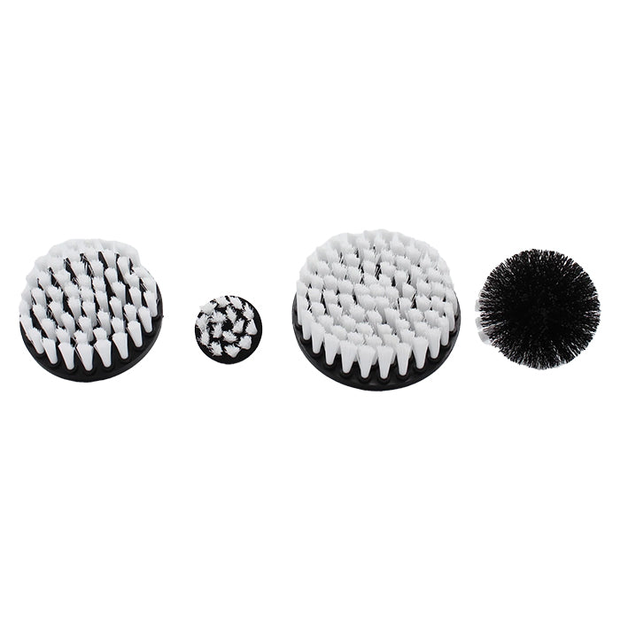 Dette sæt indeholder fire børster med fine/bløde fibre, designet til at blive monteret på en elektrisk bore- eller skruemaskine. De er ideelle til effektivt at fjerne snavs og skidt fra måtter, tæpper og andre tekstiloverflader. De stive børstehår er perfekte til at fjerne snavs, der er svært at få fjernet på tæpper og bilmåtter.