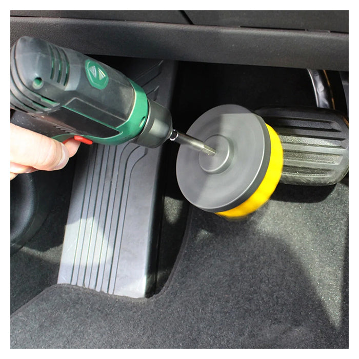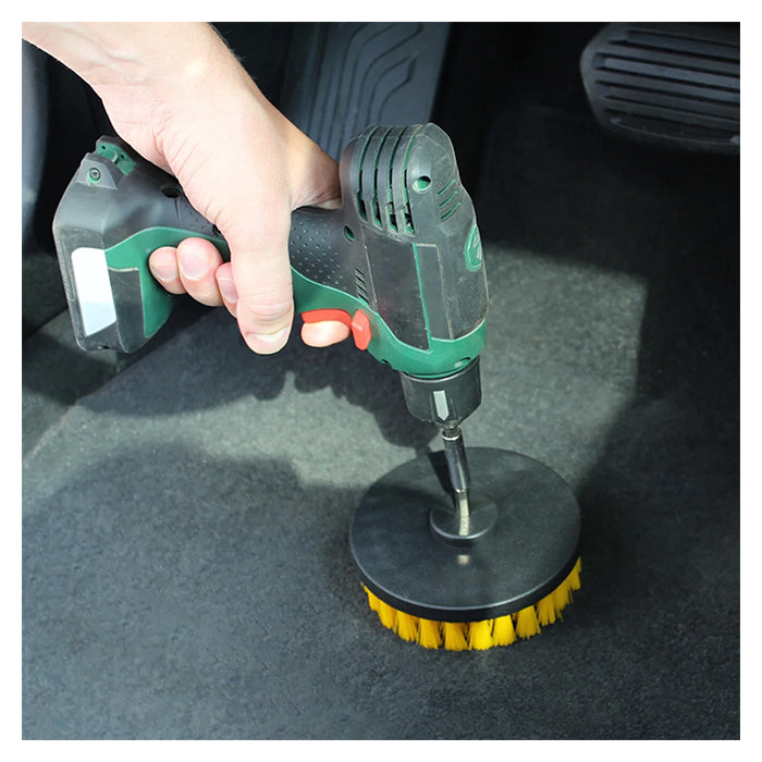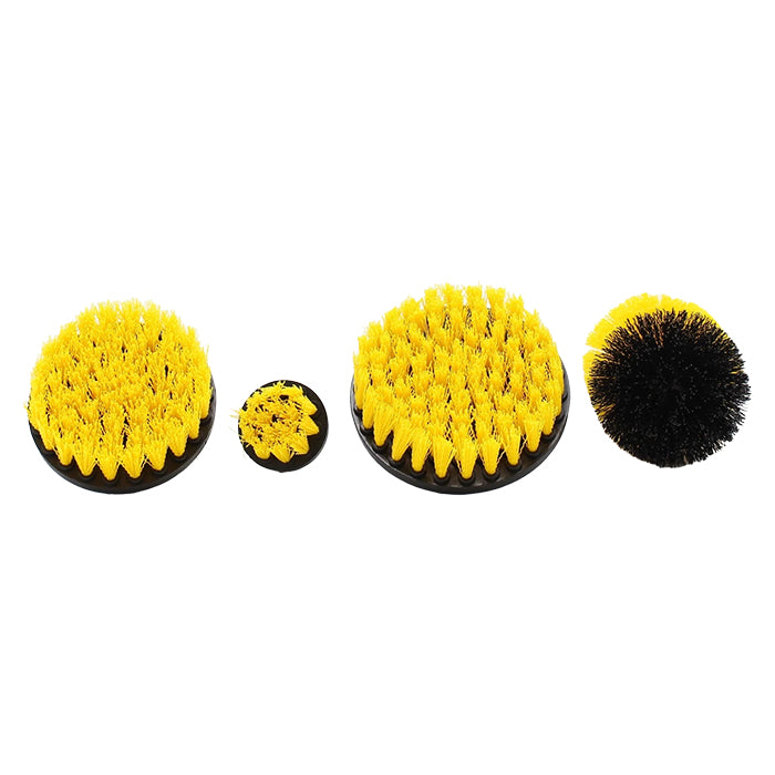 Dette sæt indeholder fire børster med medium hårde fibre, designet til at blive monteret på en elektrisk bore- eller skruemaskine. De er ideelle til effektivt at fjerne snavs og skidt fra måtter, tæpper og andre tekstiloverflader. De stive børstehår er perfekte til at fjerne snavs, der er svært at få fjernet på tæpper og bilmåtter.