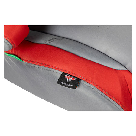 Barnesæde/selepude med ryg med motiv af Cars. Denne selepude er velegnet til børn mellem 100 og 150 cm i højden, så de altid sidder sikkert og behageligt med selen korrekt placeret over skulderen i stedet for på nakken.