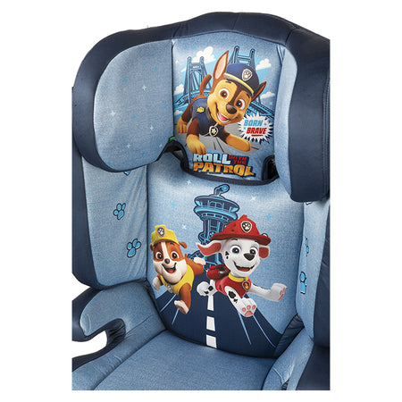 Barnesæde/selepude med ryg med motiv af Paw Patrol. Denne selepude er velegnet til børn mellem 100 og 150 cm i højden, så de altid sidder sikkert og behageligt med selen korrekt placeret over skulderen i stedet for på nakken.
