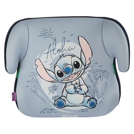 Barnesæde/selepude med motiv af Disney Stitch. Denne selepude er velegnet til børn mellem 125 og 150 cm i højden, så de altid sidder sikkert og behageligt med selen korrekt placeret over skulderen i stedet for på nakken. Installationen er meget fleksibel og giver dig mulighed for at placere selepuden både på passager- og bagsædet.