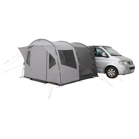 Det fritstående bustelt Reine har et fleksibelt tunneldesign med vinklede glasfiberstænger plus udvendige glasfiberstænger, der giver stabilitet, støtter frontsolsejlet og strammer teltdugen. Teltet byder på ståhøjde, fem vinduer med gardin, en dobbeltdør bagtil og en frontdør, store ventilationsåbninger samt en heldækkende fikserbar bund. Valgfrit ekstraudstyr omfatter et topersoners indertelt, der kan fastgøres på begge sider af teltet.