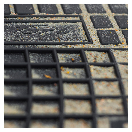 Måtten har en 1,5 cm praktisk kant, hvilket gør at måtten holder på skidt og snavs og beskytter bilens originale tæppe, samt nem at rengøre. Hvis bilen har originale låse, vil der i måtten være fastgørelseshullerne som sikrer at måtterne holdes på plads i bilen.