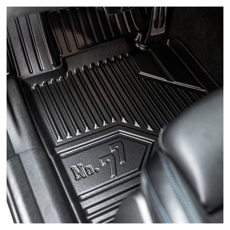 No. 77 Gummimåtter fra Frogum er praktiske og et absolut must i vinterhalvåret. Måtterne er "skræddersyet" til den enkelte bilmodel, og har derfor 100% pasform takket være nøjagtig lasermåling af hver bil.