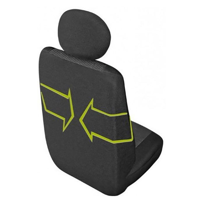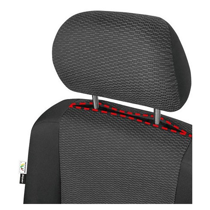 Disse sædeovertræk beskytter bilens originale polstring mod slid og skader, mens det klassiske og stilrene design giver et æstetisk løft. Den afdæmpede farvekombination af sort med en diskret grå tekstur midt i betrækket passer harmonisk ind i ethvert bilinteriør. En af fordelene ved betrækkene er, at de dækker hele bagsiden af ryglænet.