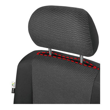 Overtrækket er fremstillet af slidstærkt jacquardstof med indvendig PUR-skumlaminering, som forhindrer glidning og sikrer lang holdbarhed. Det er kompatibelt med biler med sideairbags, takket være den innovative sikkerhedssøm, der åbner sig ved en kollision. Den mørke, stilrene farve giver et eksklusivt udtryk og passer til de fleste kabiner. Monteringen er enkel og kræver intet specialværktøj – klips og illustreret vejledning medfølger.