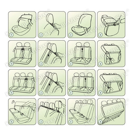 - Komplet sæt: Inkluderer betræk til ryglæn, sædebund og nakkestøtte samt kroge til fastgørelse.