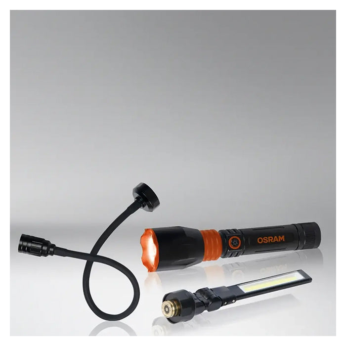 Osram LEDinspect 3-i-1 Inspection Light Kit er et innovativt og alsidigt lyssæt, designet til brugere med behov for både fleksibilitet og høj ydeevne. Sættet indeholder tre udskiftelige hoveder – en lommelygte, en inspektionslampe og en fleksibel svanehalslampe – ideelt til bilreparationer, værkstedsarbejde og inspektionsopgaver.
