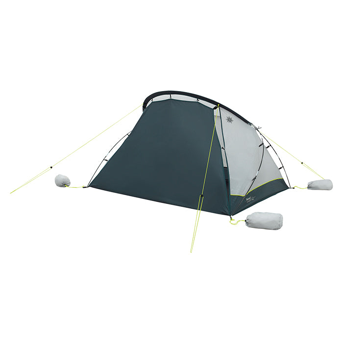 Whitby Beach Shelter er nemt at sætte op og giver øjeblikkelig skygge samt UPF 50+ beskyttelse. Hjørneposerne kan fyldes med sand for ekstra stabilitet, og pløkker sikrer en stabil opsætning på løst underlag. Netlommer tilbyder praktisk opbevaring af mindre genstande. Perfekt til en afslappende dag på stranden.