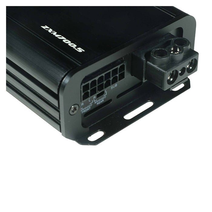 ZXM700.5 er en imponerende 5-kanals mini-forstærker. Trods sin ultra-kompakte størrelse leverer den over 700W RMS, og tilbyder alle de funktioner og den effekt, du forventer af en fuld størrelse 5-kanals forstærker. ZXM-forstærkere er designet til at være så små som muligt uden at gå på kompromis med lydkvalitet, effekt og funktioner.