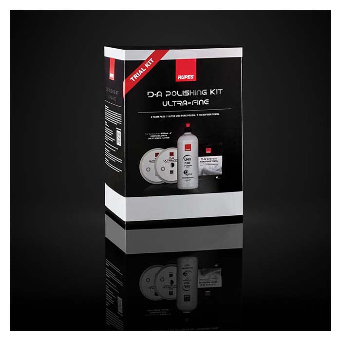 Dette trial kit med DA ULTRA-FINE er en samling af Rupes efterbehandlingsprodukter, som giver ultrafin finish, og som er designet til at producere den højest mulige optiske klarhed og refleksionsevne, når det anvendes med Rupes BigFoot poleringssystem. DA ULTRA-FINE kan anbefales uanset om målet er at opnå niveauer af showglans, eller om der arbejdes på meget sarte malingssystemer med mindre defekter.