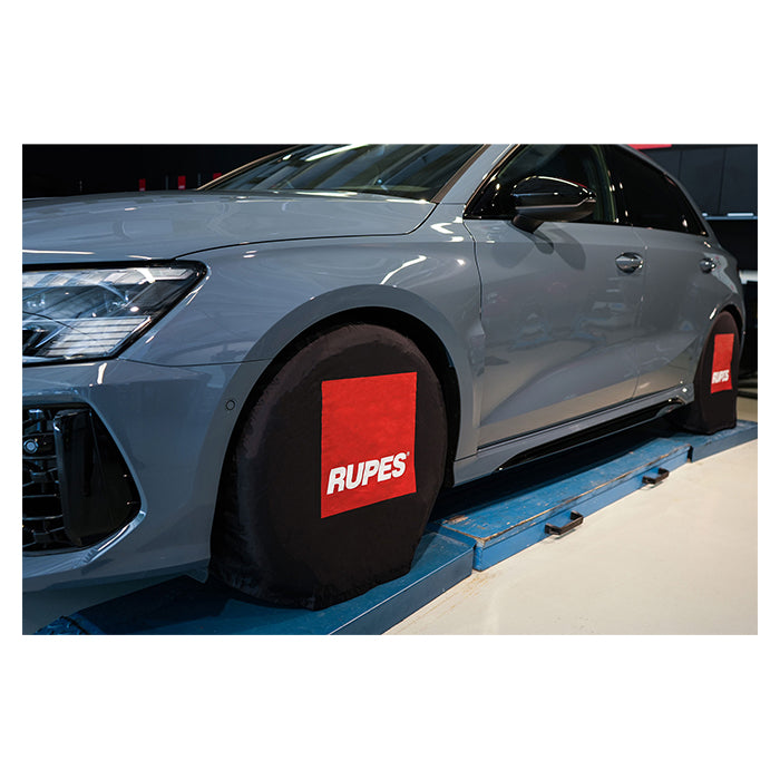 RUPES hjulovertræk er en pakke med 4 højkvalitets overtræk til dine bilhjul. Dette sæt beskytter fælgene mod vand, snavs, poleringsrester, slibestøv og andre kemikalier, væsker og forurenende stoffer. RUPES hjulovertræk er sorte, fremstillet i høj kvalitet og prydet med det røde RUPES-logo, hvilket giver et professionelt look i et detailingcenter eller værksted. Du kan nemt placere RUPES hjulovertræk rundt om fælgene, mens bilen står på jorden.