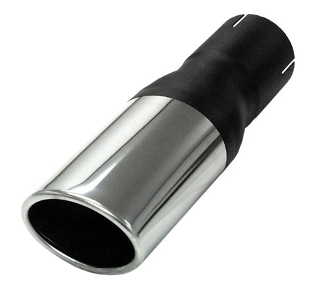Elips afgangsrør. Oval 70/90 mm. Rustfrit med forkromet afgang. Dæmperindsats.