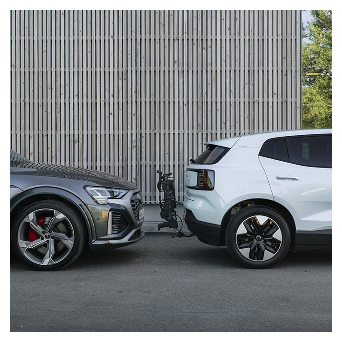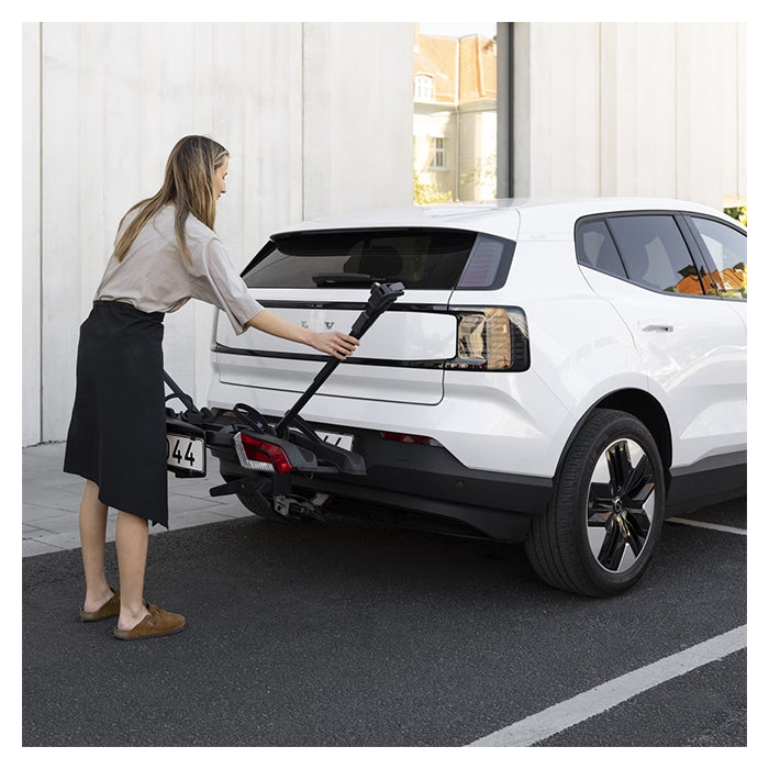 De bevægelige cykelarme med fleksibelt drejehoved tilpasses nemt forskellige cykeltyper og stelstørrelser, og de robuste hjulremme med skraldespænder holder cyklerne sikkert fast – selv med brede dæk op til 3". Cyklerne kan læsses af og på i vilkårlig rækkefølge, og den smarte vippefunktion giver adgang til bagagerummet, selv når cyklerne er monteret. Når holderen ikke er i brug, kan den vippes op mod bilen og fylder minimalt.