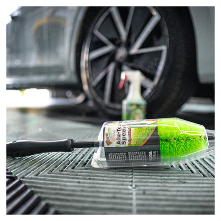 Opnå en skinnende ren finish med Tuga Alu-Teufel Spezial fælgbørsten – den perfekte makker til Alu-Teufel Spezial fælgrens. Børsten er designet til at fjerne selv det mest genstridige snavs som bremsestøv, olie- og gummirester samt flyverust.