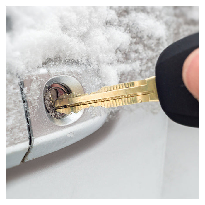 Låsespray som hjælper med lynhurtig optøning af frosne låse på din bil.